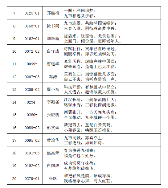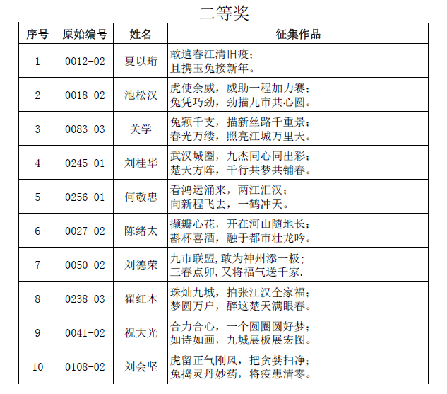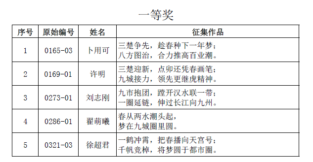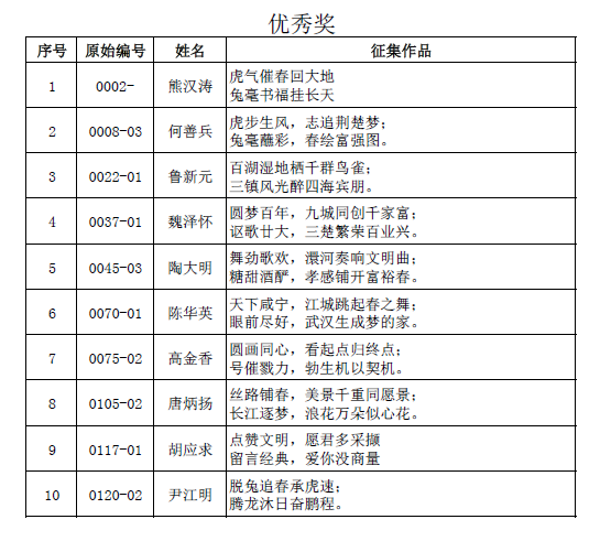 附件:第二届武汉都市圈“联墨迎春”楹联征集大赛获奖名单